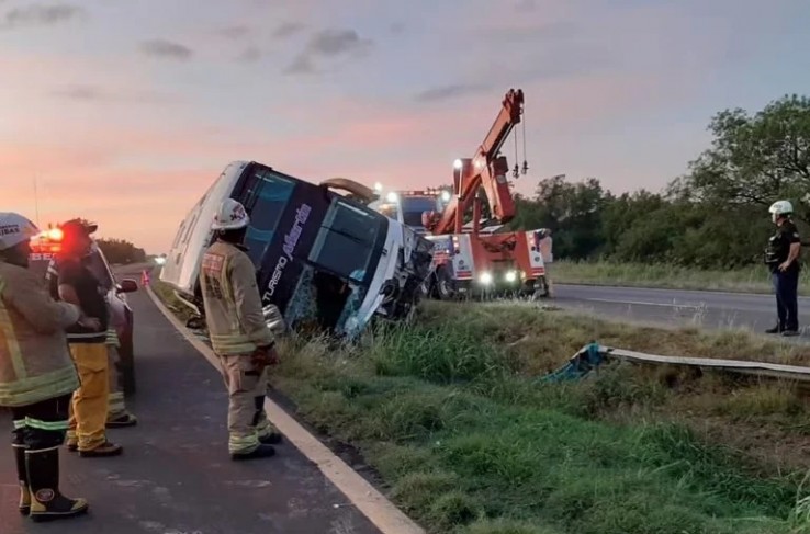 Veinte personas resultaron heridas “sin riesgo de vida” tras el vuelco esta madrugada de un ómnibus que llevaba 58 pasajeros desde la ciudad de Mar del Plata hasta Brasil y tres de ellas fueron trasladadas el Hospital Centenario de Gualeguaychú, informaron los Bomberos Voluntarios de Ceibas.
