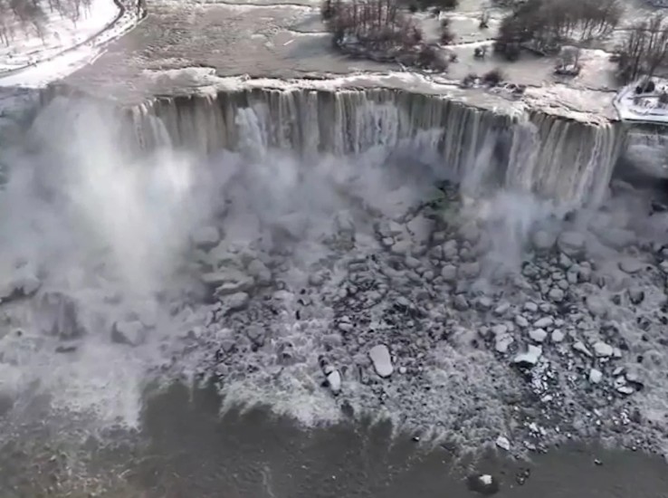 Estas cataratas son una atracción turística que se encuentra en el límite de ambos países y que recibe a cientos de miles de personas por año. No obstante, en medio de esta extrema ola polar, se puede apreciar cómo el temporal Elliot es responsable de su congelamiento parcial.
