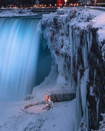 En las imágenes difundidas a través de las redes sociales, se pueden ver bloques de hielo en el río Niágara, árboles cubiertos por la nieve, montañas de nieve cerca de la orilla y todos los lados del paisaje también cubiertos por picos de hielo.