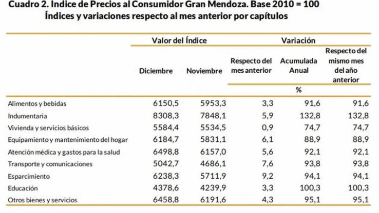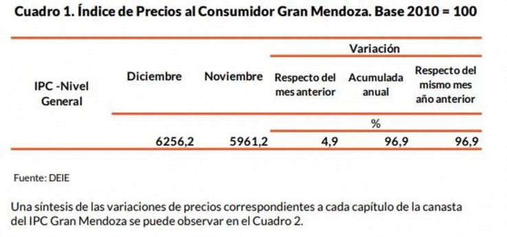 En diciembre, la inflación en Mendoza fue del 4,9% según la DEIE, al igual que en noviembre, y antes, sólo en enero y en febrero había sido inferior al 5%.