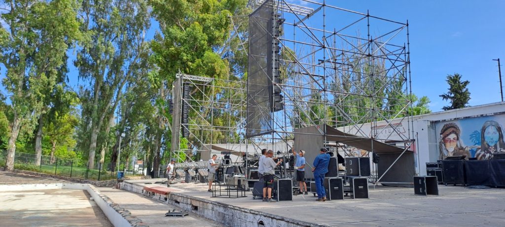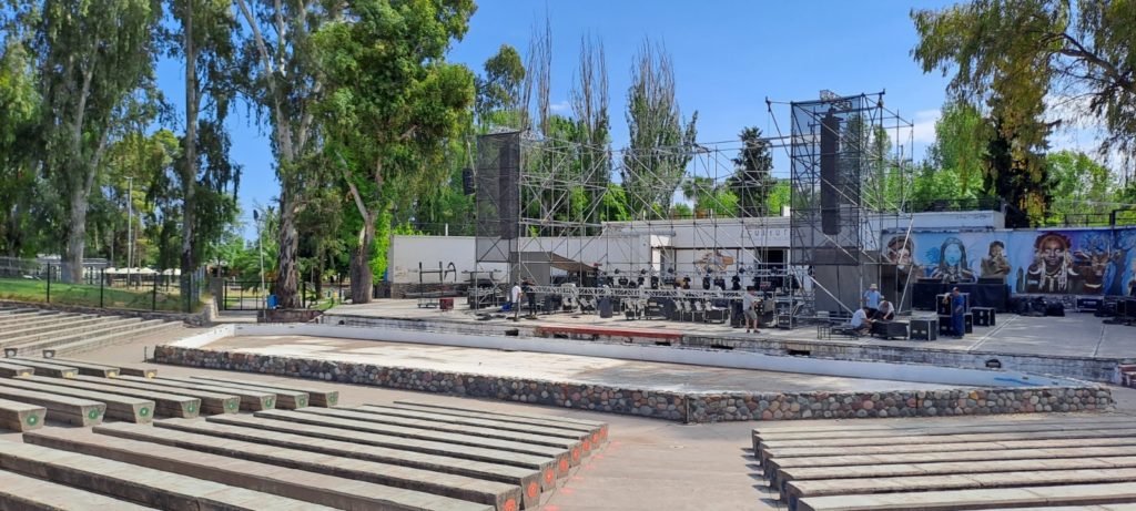 En el escenario Lisandro Pereyra Luna del Teatro Griego Chacho Santa Cruz ya se monta el escenario principal de la Fiesta Nacional del Turismo y el Vino.