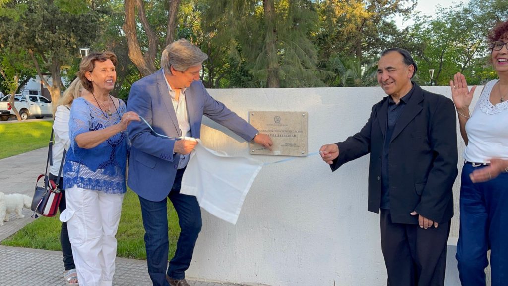 Ante una gran cantidad de vecinos, el Intendente Emir Félix junto al mandatario comunal electo, Omar Félix, cortaron la cinta de una nueva obra de infraestructura urbana de San Rafael, la de la plaza Libertad en el barrio Unión Empleados de Comercio.