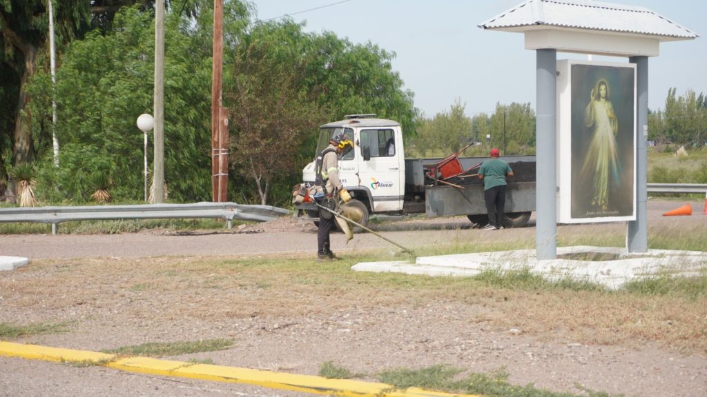 La Dirección de Obras Publicas de la Municipalidad realiza trabajos sobre el paseo en el acceso Norte con el objetivo de embellecer y modernizar el lugar.