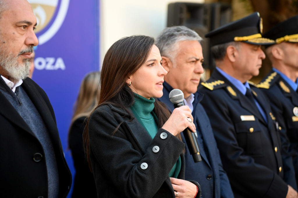 El Gobernador Alfredo Cornejo y la ministra de Seguridad y Justicia, Mercedes Rus, encabezaron el acto de presentación de 180 policías que se suman a la fuerza policial de la provincia. Los nuevos uniformados serán asignados en diferentes puntos de la provincia de acuerdo con las necesidades de cada distrital.