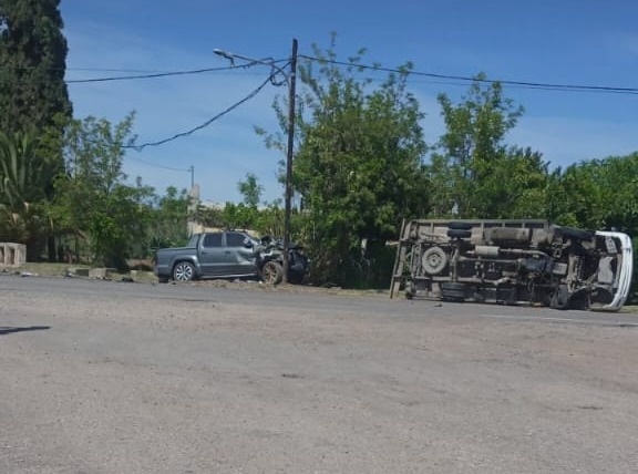 un grave accidente tuvo lugar en el distrito de Cañada Seca, en el cruce de las calles Tomas Abete y Luis Rojo. Una camioneta impactó violentamente contra un vehículo de gran porte, lo que provocó que la primera unidad volcara de manera aparatosa. Las imágenes del incidente muestran la camioneta volcada sobre uno de sus lados, mientras el otro vehículo permanece en el lugar con daños visibles en su parte frontal.