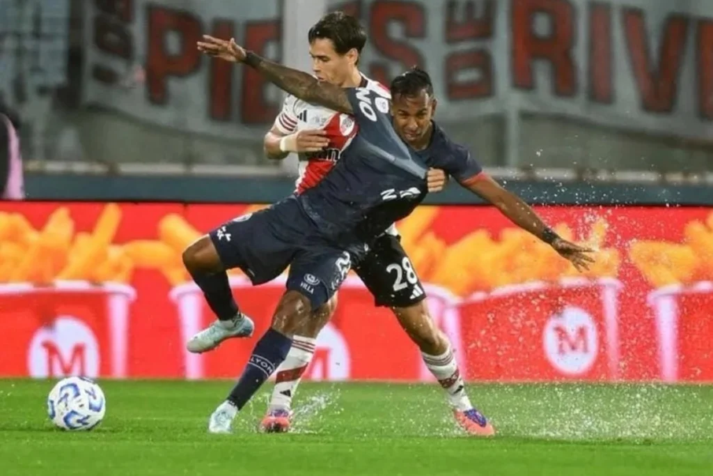 La tendencia de la supremacía de River se confirmó a los 32 con un triple tiro de Juanfer, Marcos Acuña y Nacho Fernández que rebotó en un defensor cuando tenía destino de red. Pero a los 35′ el Muñeco debió hacer una modificación: Facundo Colidio por Driussi, con una molestia muscular.
