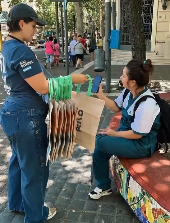 “Presentamos experiencias, repartimos bolsas de la marca y realizamos sorteos, acercando San Rafael a mendocinos y turistas que se sumaron con entusiasmo”, explicó la Directora de Turismo, Victoria Contardo.
