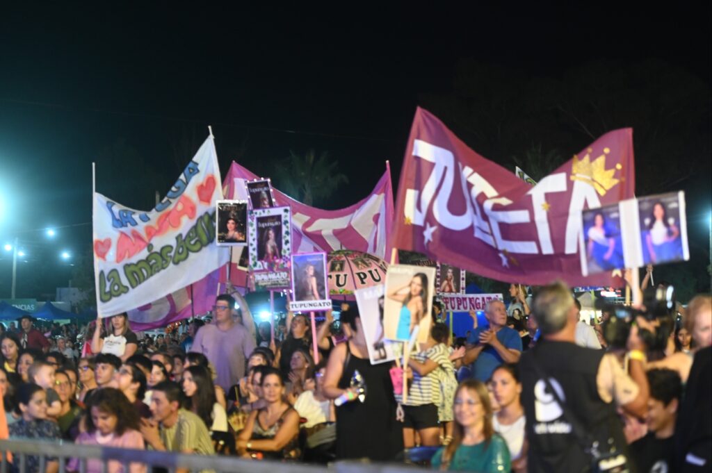 Vecinos de Villa Tulumaya y visitantes de diferentes rincones de la provincia que acompañan a su reina de la Vendimia departamental en el camino hacia el trono nacional fueron ocupando el espacio verde cuando caía la tarde. A ellos se sumaron visitantes de otras provincias y países, atraídos por el espectáculo, y autoridades del Ejecutivo provincial, la Legislatura, municipios, organismos nacionales y credos religiosos.