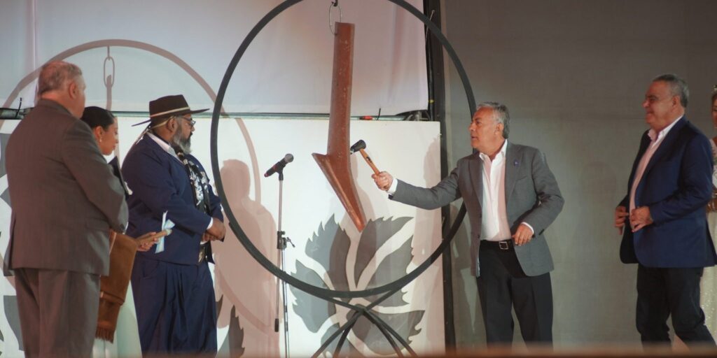 Ya en el final, el Gobernador Alfredo Cornejo compartió el escenario para realizar los tres golpes de reja llamando a celebrar los frutos del trabajo de los mendocinos.